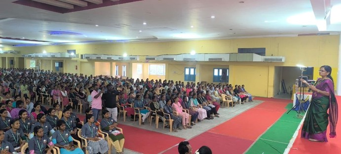 The Women Empowerment Cell of P.S.R Engineering College, Sivakasi in association with Virudhunagar District Administration & Social Welfare and Women Empowerment Department has organized an Awareness Program for women about women’s rights and empowerment on 15.03.2025. More than 2000 students and 30 faculties were participated in this program. Dr V P Jeyaseelan, I.A.S, District Collector, Virudhunagar acted as a guest of Honours and address the gathering about legal rights, safety, and economic opportunities, potentially involving local organizations and government schemes.