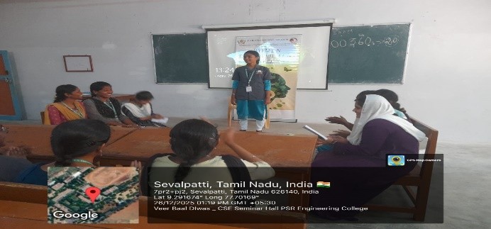 The Women Empowerment Cell actively mentors female students to excel in innovation and design, focusing on Sustainable Digital Well-being, Community Empowerment, and Water & Agriculture. As part of this initiative, students participated in TNWISE 2025 – TANCAM’s Hackathon for Women in Science and Engineering, organized by the Tamil Nadu government. This participation provided a platform for young women to showcase their technical and problem-solving skills