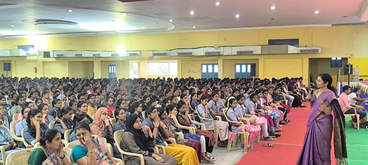 An Awareness program on prevention of teenage health issues on 21.01.2026. Dr.Gomathi, Founder of Femi’9 address the gathering about girls’ health issues